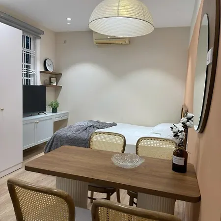 Rosie Home - P203アパート内には、自家製の食事を用意できる台所があります。 最寄りのバス停Cafe Don 105E5 Thai Thinh - Doi dien Benh vien Cham cuu Trung uongは300メートルほどの距離にあります。